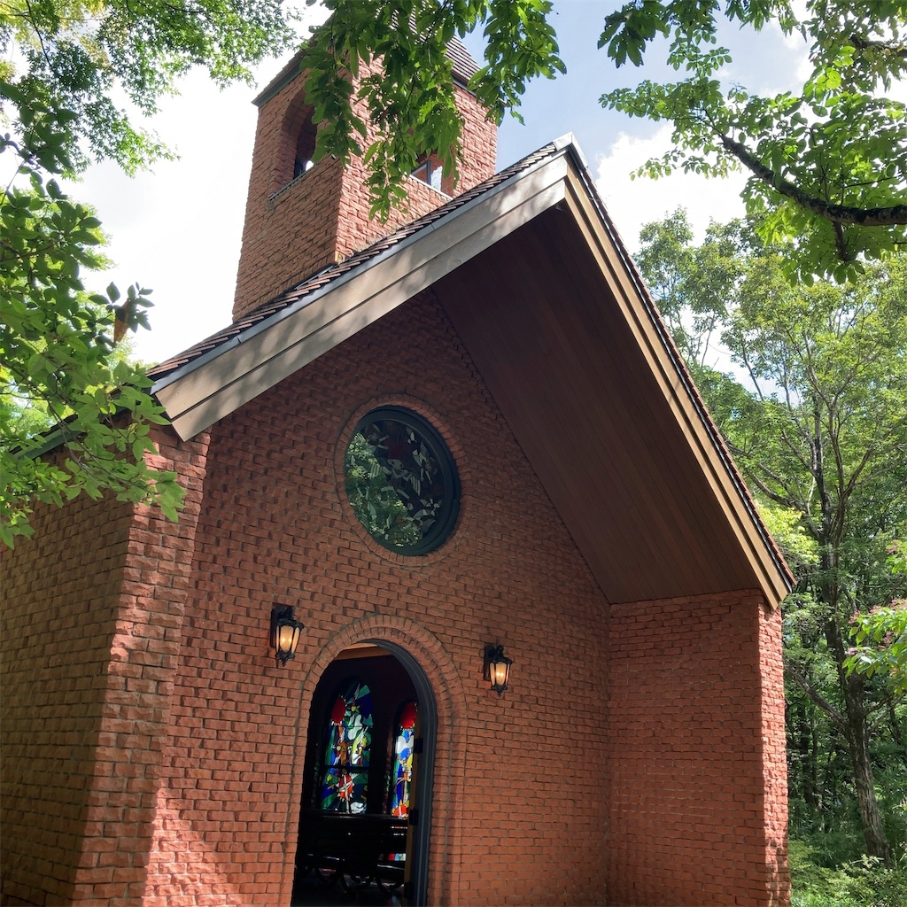 チャペルの中から見る晩夏のお庭が美しい。